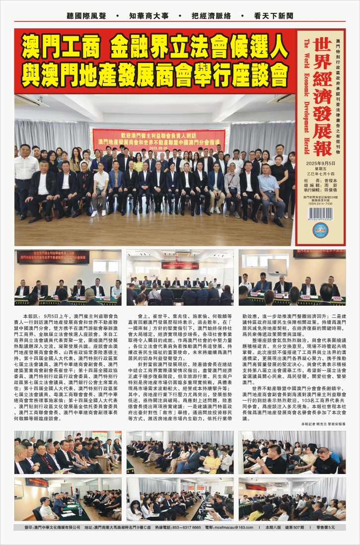 【世界經濟發展報】澳門工商金融界立法會候選人與澳門地產發展商會舉行座談會