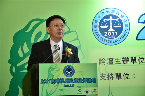 澳門地產發展商會會長陸惠德先生在論壇上做專題演講